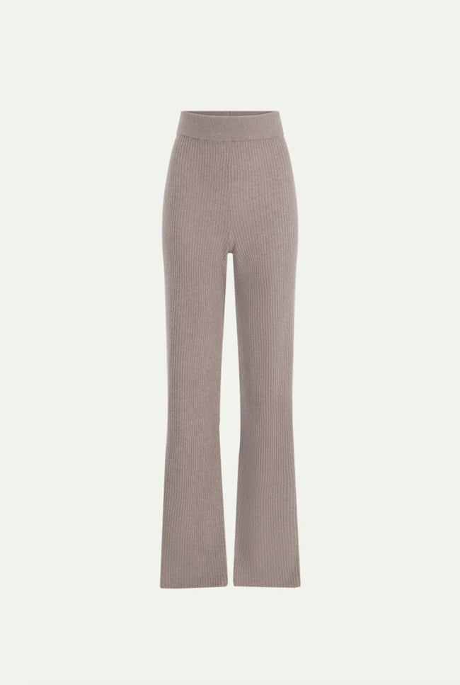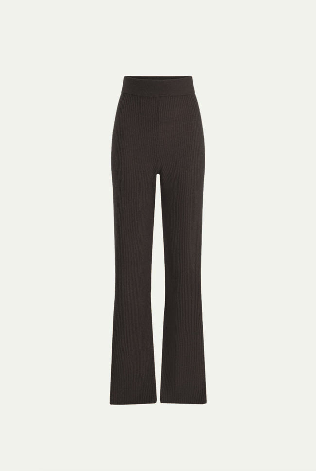 Hight waisted ribbed pants made in a soft and lightweight hand feel. It has a flair bottom hem and a comfortable elastic waistband.