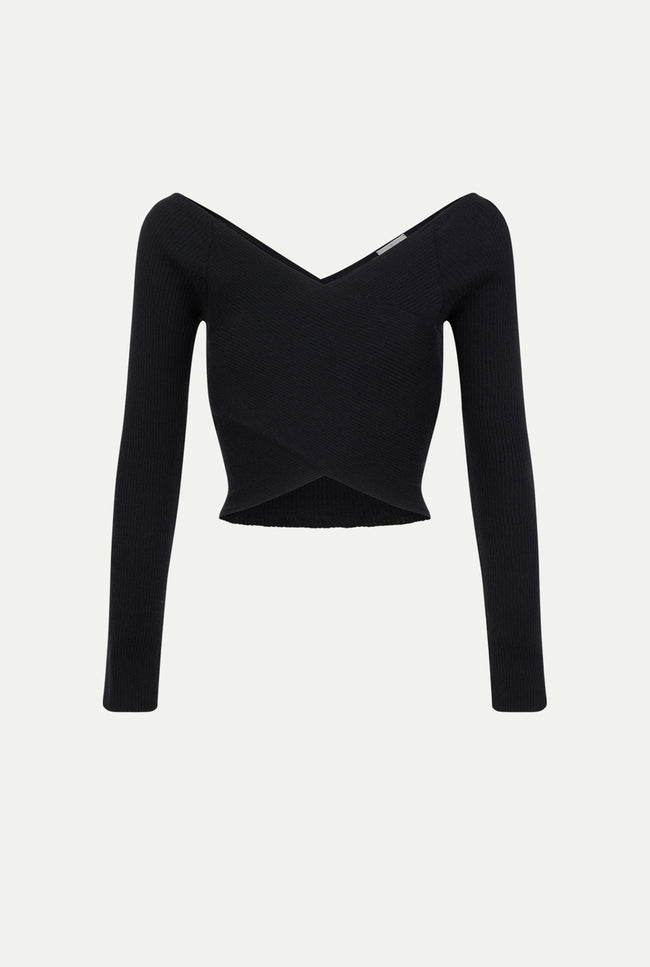 Made in a very soft ribbed jersey knit with a very light weight handfeel and second-skin feeling, the BUDVA cropped top is designed with a front crossover and a open V-neck and back