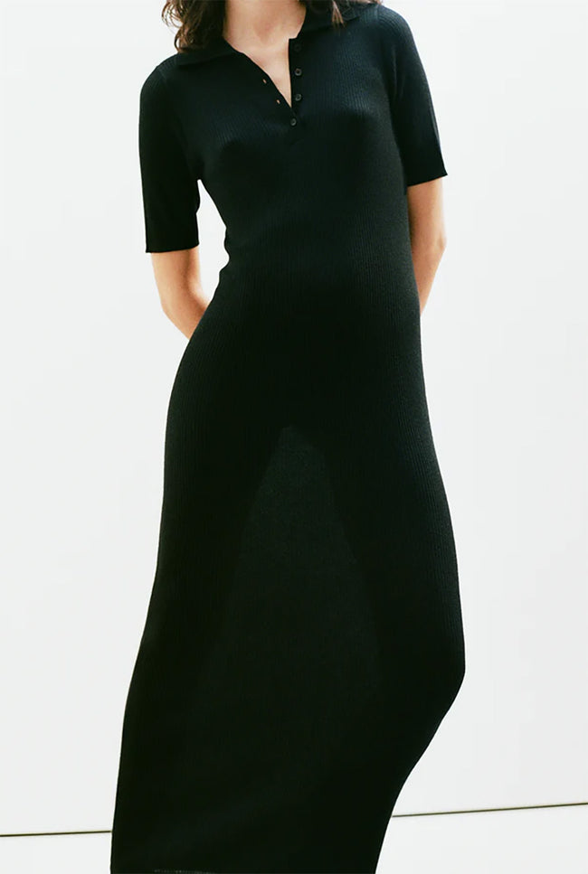 The EGIM dress is made in a soft and very light ribbed cashmere ( second-skin feeling ) . Designed with a polo collar and short sleeves.