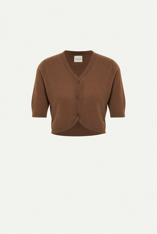 The Fano is a cropped and shortleeve cardigan made in lightweight cashmere.