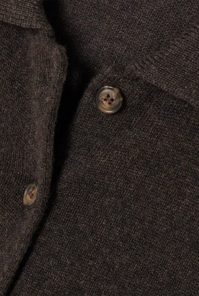 Made in a lightweight handfeel cashmere , the FRAGA sweater is designed with fitted cut and front horn buttons.