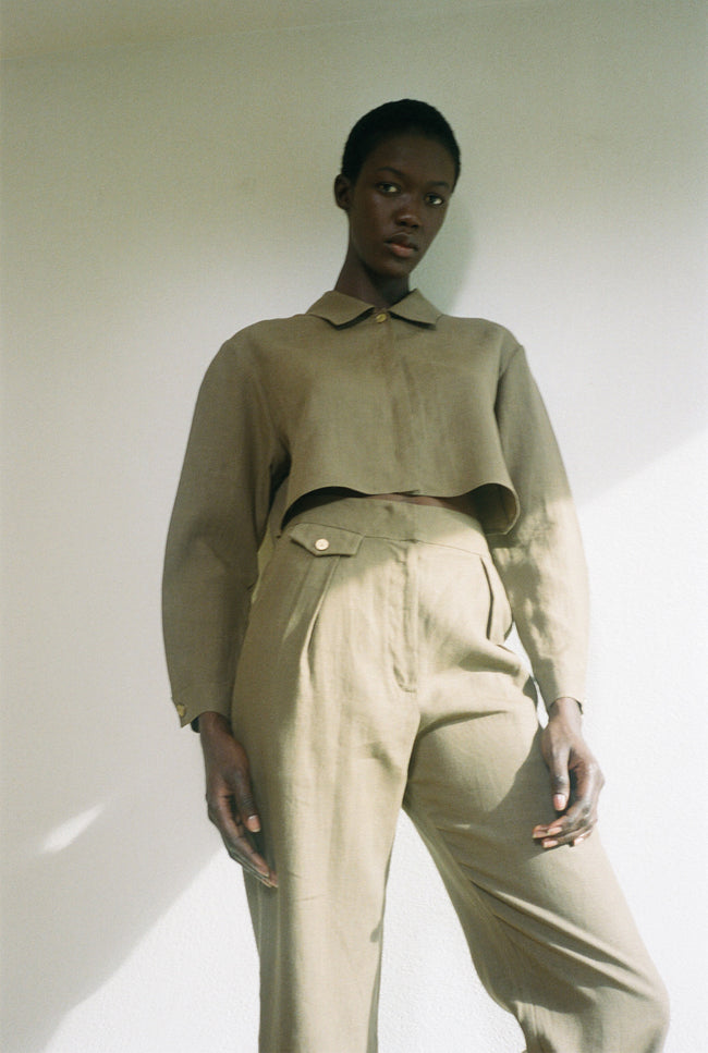 Made in high quality Italian linen, the JAOUF tapered pants are tailored with front pleats and a high waist.