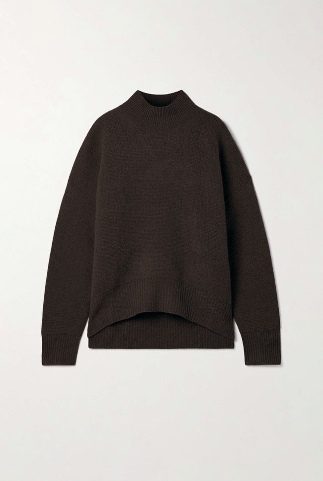 Made from a brushed and compact very soft cashmere with heavyweight handfeel, the oversized NANTES sweater is finished with a mock ribbed neck, dropped shoulders and rib hems.