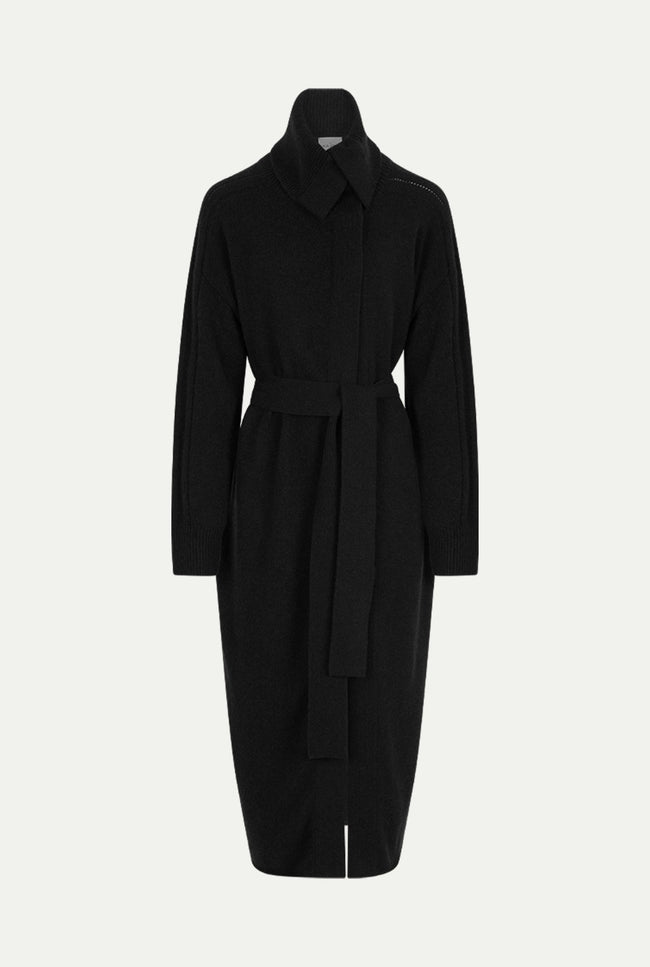 The ODISHA cardigan is designed to be draped elegantly over the body. Made in a midweight/heavy handfeel cashmere, it is elevated with shoulder seam details and has a oversized collar , side pockets and hidden snap buttons.