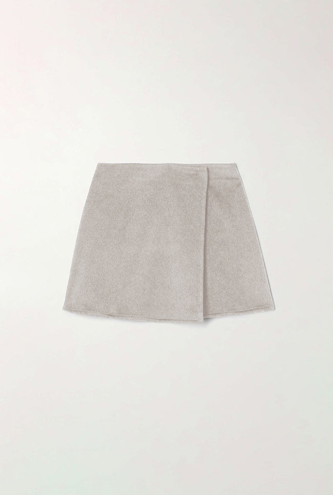 The SKARDU wrap skirt is made in pure woven cashmere .Cut for a straight cut with a front slit and a hidden black snap button.